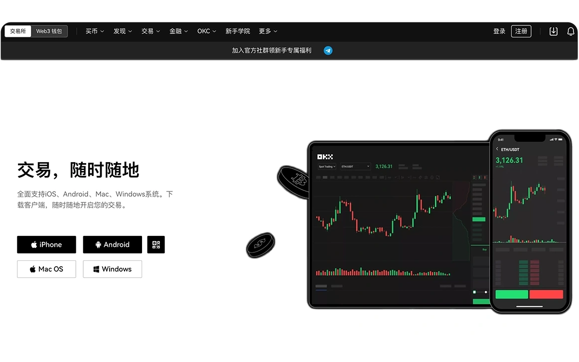 欧易iOS/Android客户端融合行情分析、交易执行、资讯推送、资产管理四大核心功能